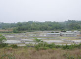 从山顶下拍摄的五合养殖场...
